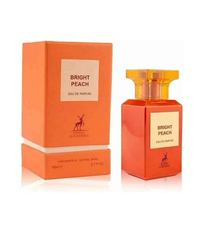 Bright Peach de Maison Alhambra es una fragancia de la familia olfativa para Hombres y Mujeres. Las Notas de Salida son durazno (melocotón), naranja sanguina y hojas verdes; la Nota de Corazón es pachulí; las Notas de Fondo son miel y coñac.
